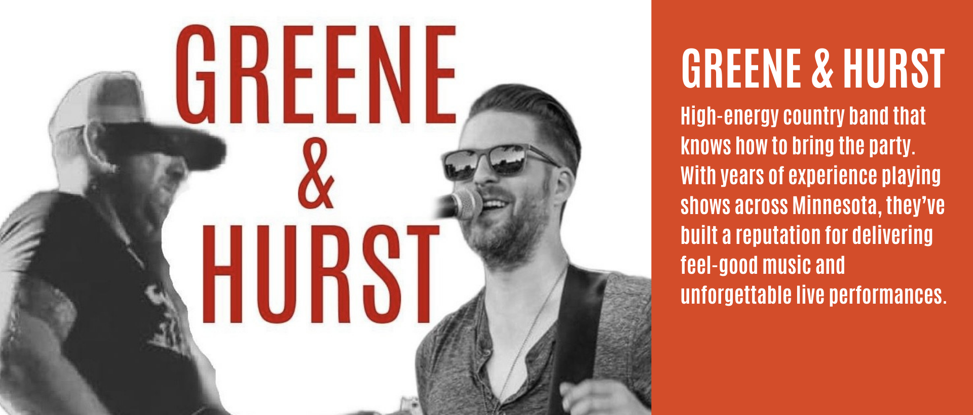 Greene and Hurst is a high-energy country band that knows how to bring the party. While country is our foundation, we’re not afraid to mix in hits from all genres to keep the crowd on their feet. With years of experience playing shows across Minnesota, we’ve built a reputation for delivering feel-good music and unforgettable live performances. Whether it’s a honky-tonk, a festival stage, or your local bar, our mission is simple — bring the fun, keep the drinks flowing, and make sure everyone leaves smiling.
