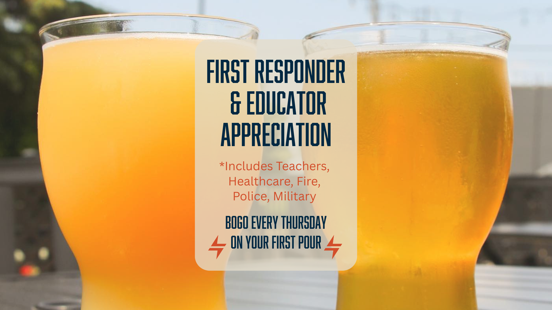 Whether you’re teaching the next generation, protecting our neighborhoods, providing critical care, or serving our country, we’re proud to raise a glass to you. Gather some friends, stop by the taproom, and enjoy a well-earned beer in appreciation of all that you do.